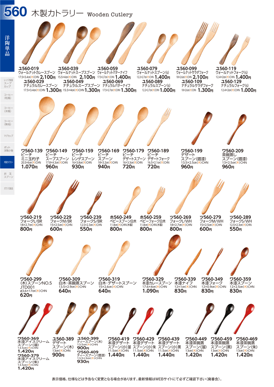 ワ560-319白木・デザートスプーン上代 640円(税抜)