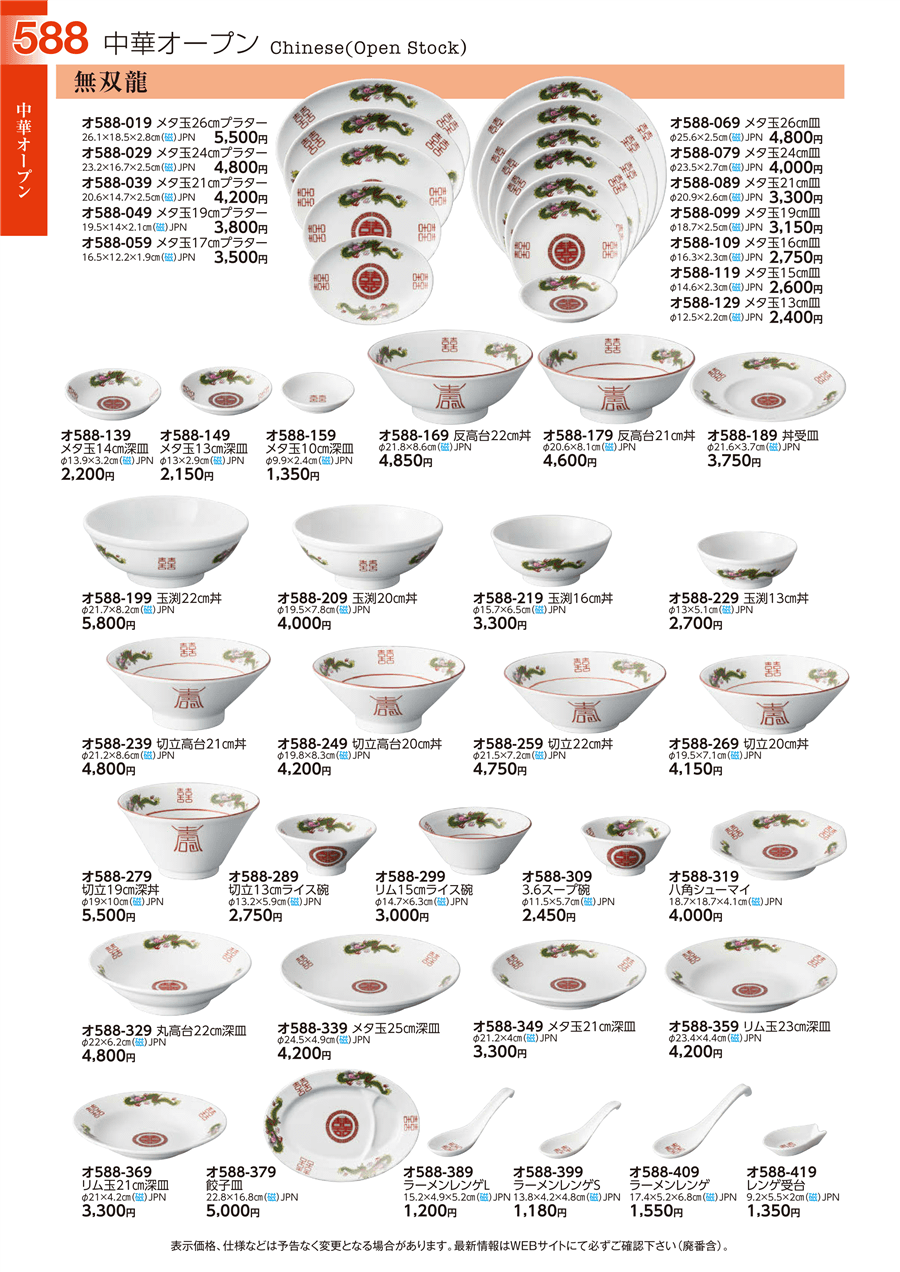 | オ588-309 | 無双龍 3.6スープ碗 | 上代 2,450円(税抜) 卸値 1,348円(税抜) (45%OFF) | ||