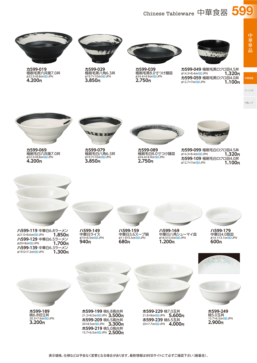 | カ599-109 | 極刷毛白ロクロ目4.0丼 | 上代 1,100円(税抜) 卸値 605円(税抜) (45%OFF) | ||