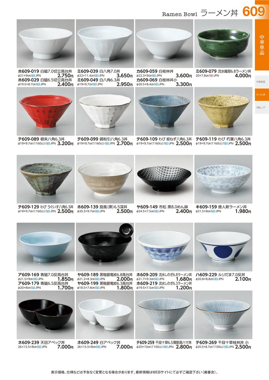 | ホ609-219 | 流水しのぎ6.3ラーメン丼 | 上代 1,200円(税抜) 卸値 660円(税抜) (45%OFF) | ||