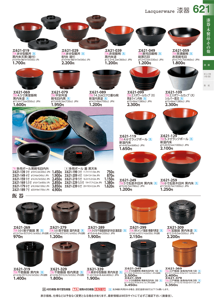 エ621-339[TA]新まゆ型飯器 黒内朱塗[洗]上代 1,900円(税抜)