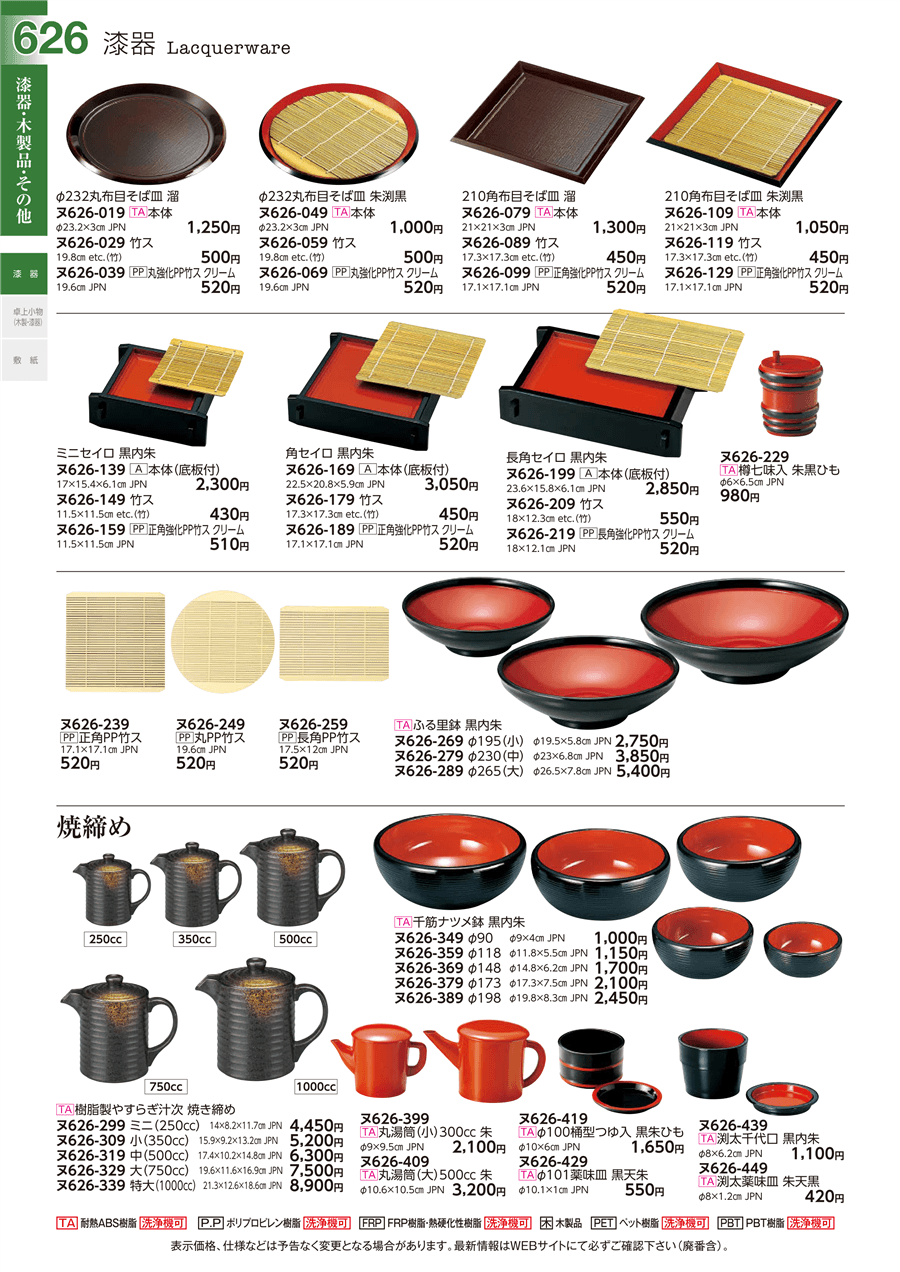 | ヌ626-169 | [A]角セイロ 黒内朱本体(底板付) | 上代 3,050円(税抜) 卸値 1,678円(税抜) (45%OFF) | ||