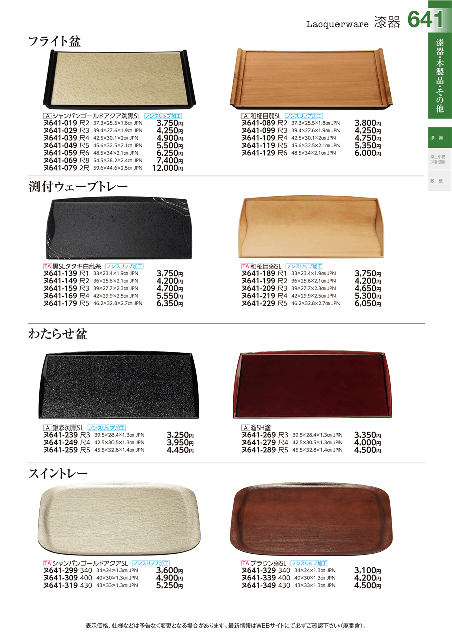 ヌ641-189[TA]和柾目弱SL尺1渕付ウェーブトレー[ノンスリップ加工]上代 3,750円(税抜)