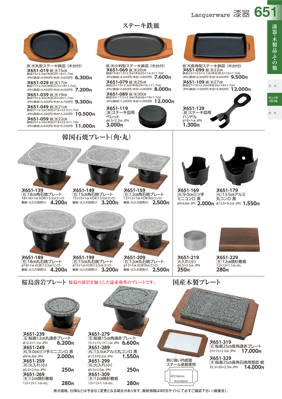 | ヌ651-329 | [木]桜島25㎝長角石焼用受皿 栃 | 上代 14,000円(税抜) 卸値 7,701円(税抜) (45%OFF) | ||