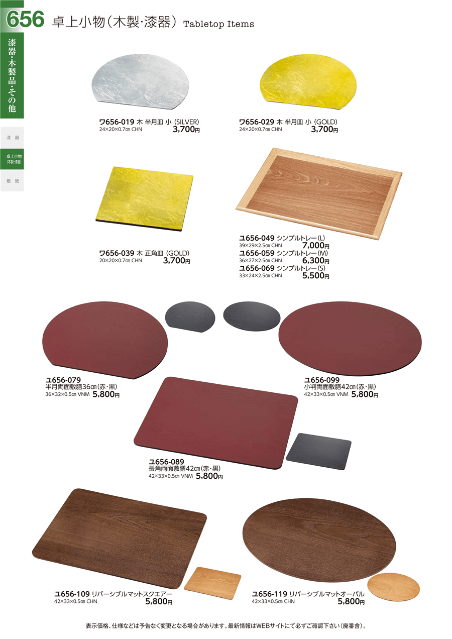 | ユ656-079 | 半月両面敷膳36㎝(赤・黒) | 上代 5,800円(税抜) 卸値 3,191円(税抜) (45%OFF) | ||
