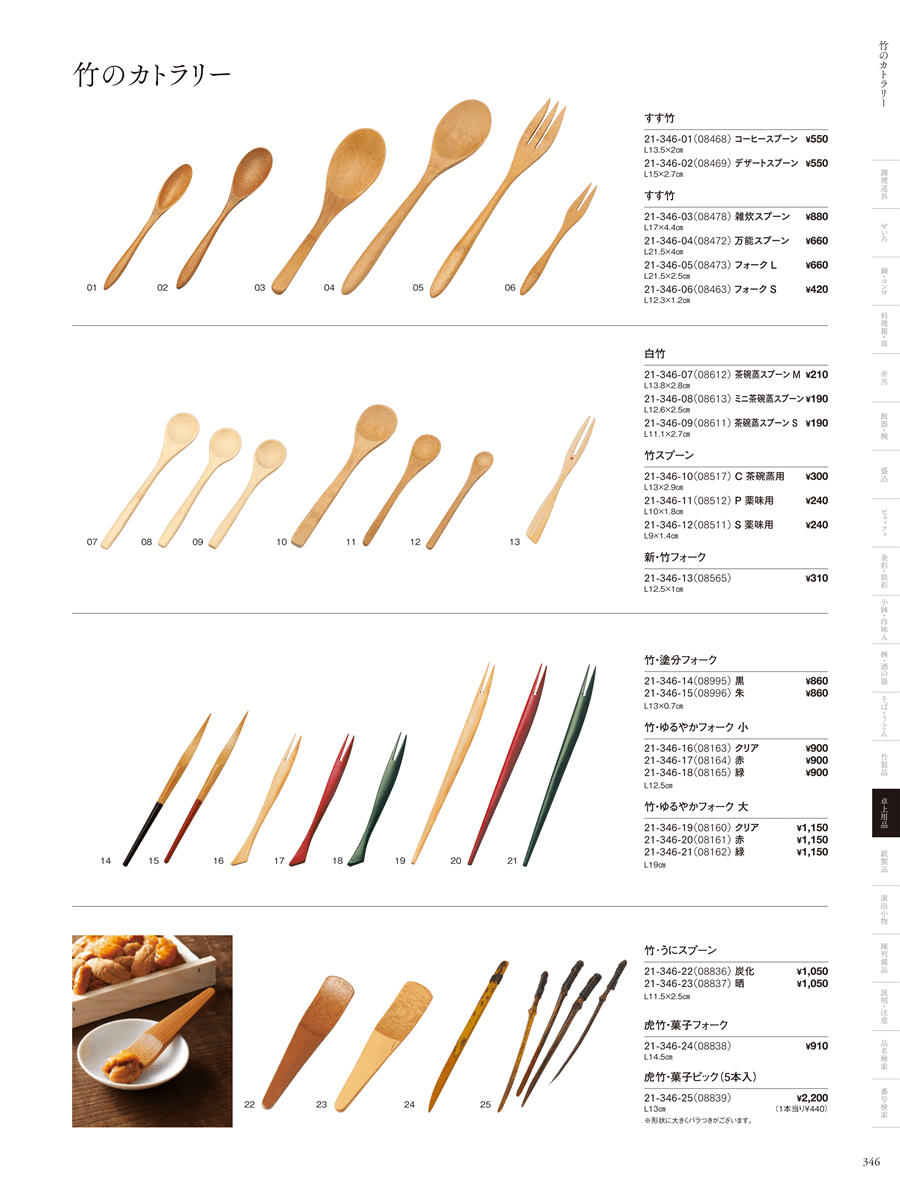 | 21-346-05 | すす竹・フォーク (L) | 上代 660円(税抜) 卸値 436円(税抜) (34%OFF) | ||