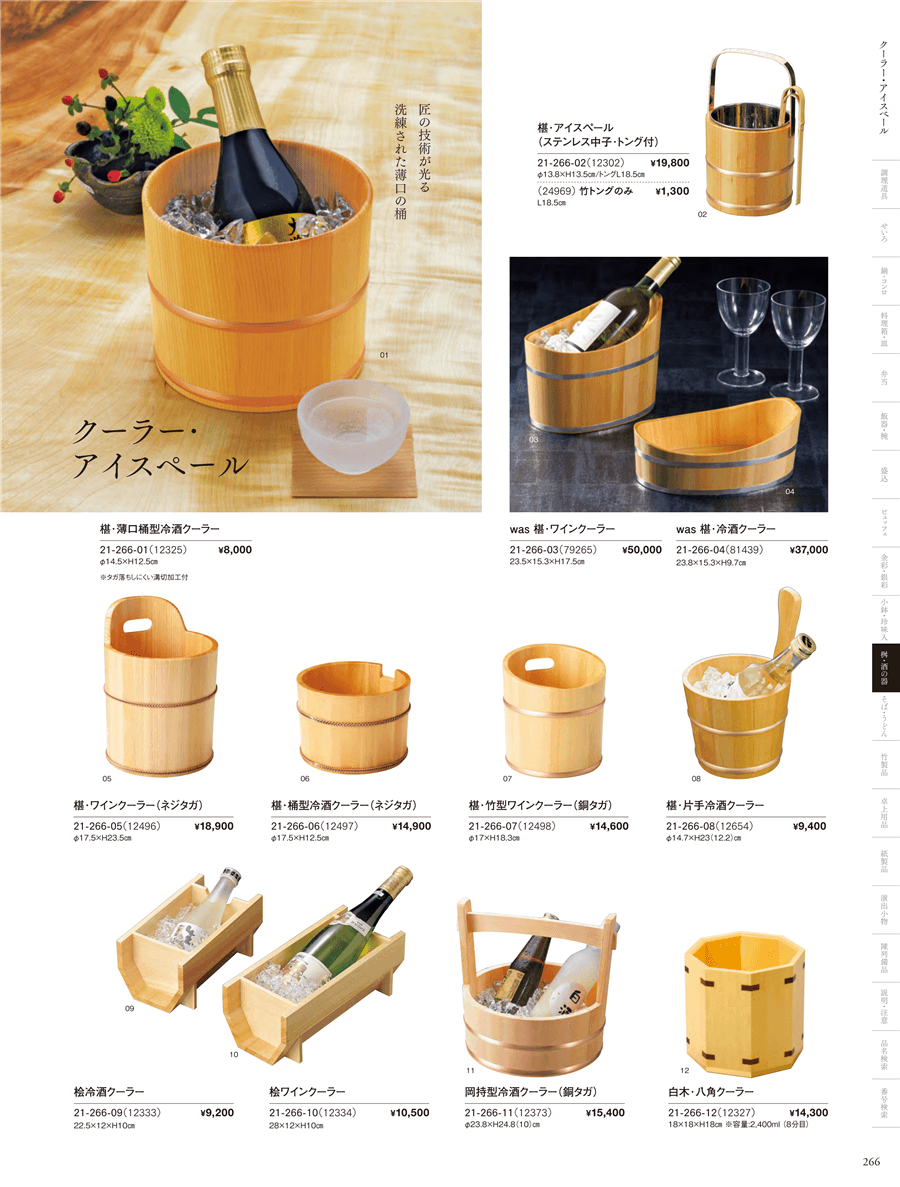 | 21-266-10 | 桧 ワインクーラー | 上代 10,500円(税抜) 卸値 6,930円(税抜) (34%OFF) | ||