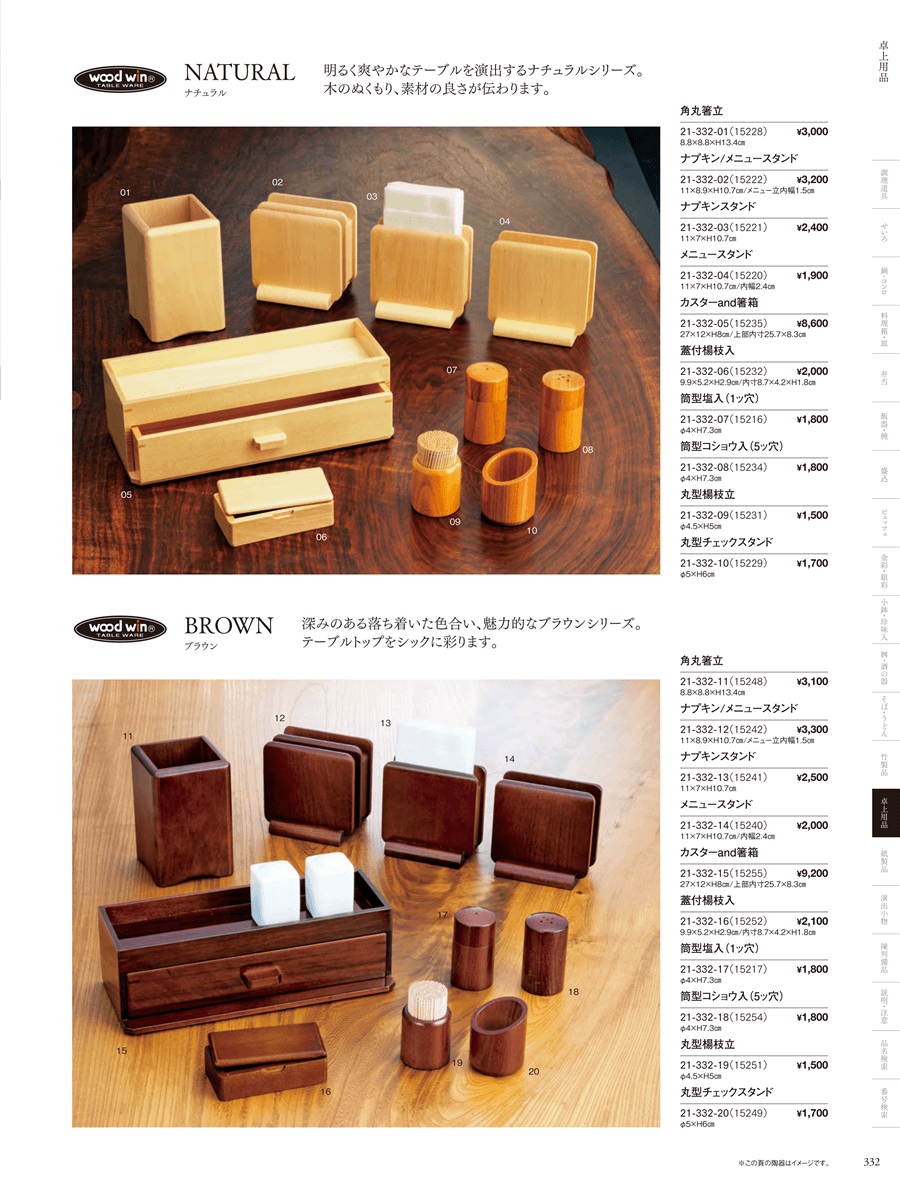 | 21-332-03 | ナプキンスタンド(ナチュラル) | 上代 2,400円(税抜) 卸値 1,584円(税抜) (34%OFF) | ||