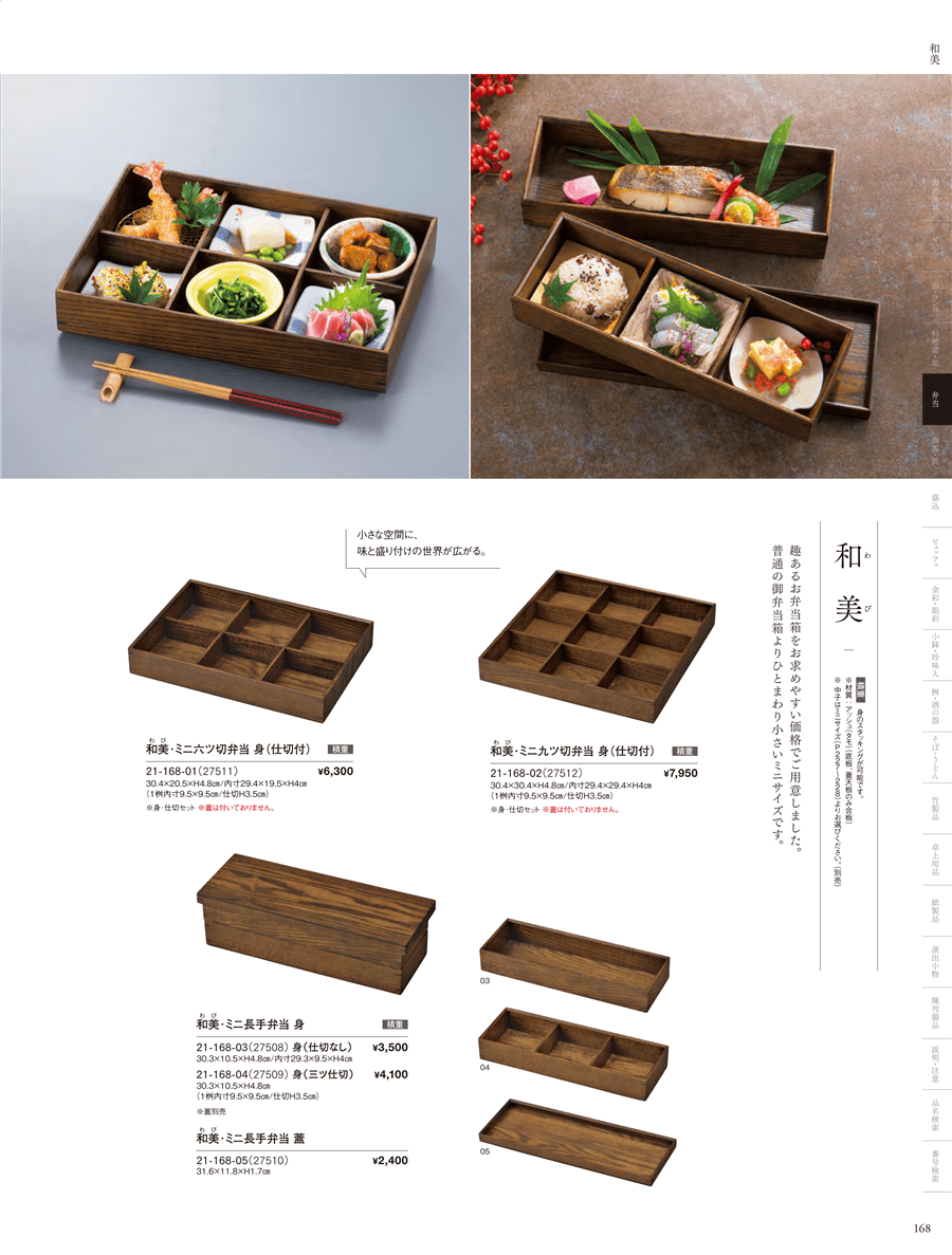 21-168-01和美・ミニ六ツ切弁当 身(仕切付)上代 6,300円(税抜)