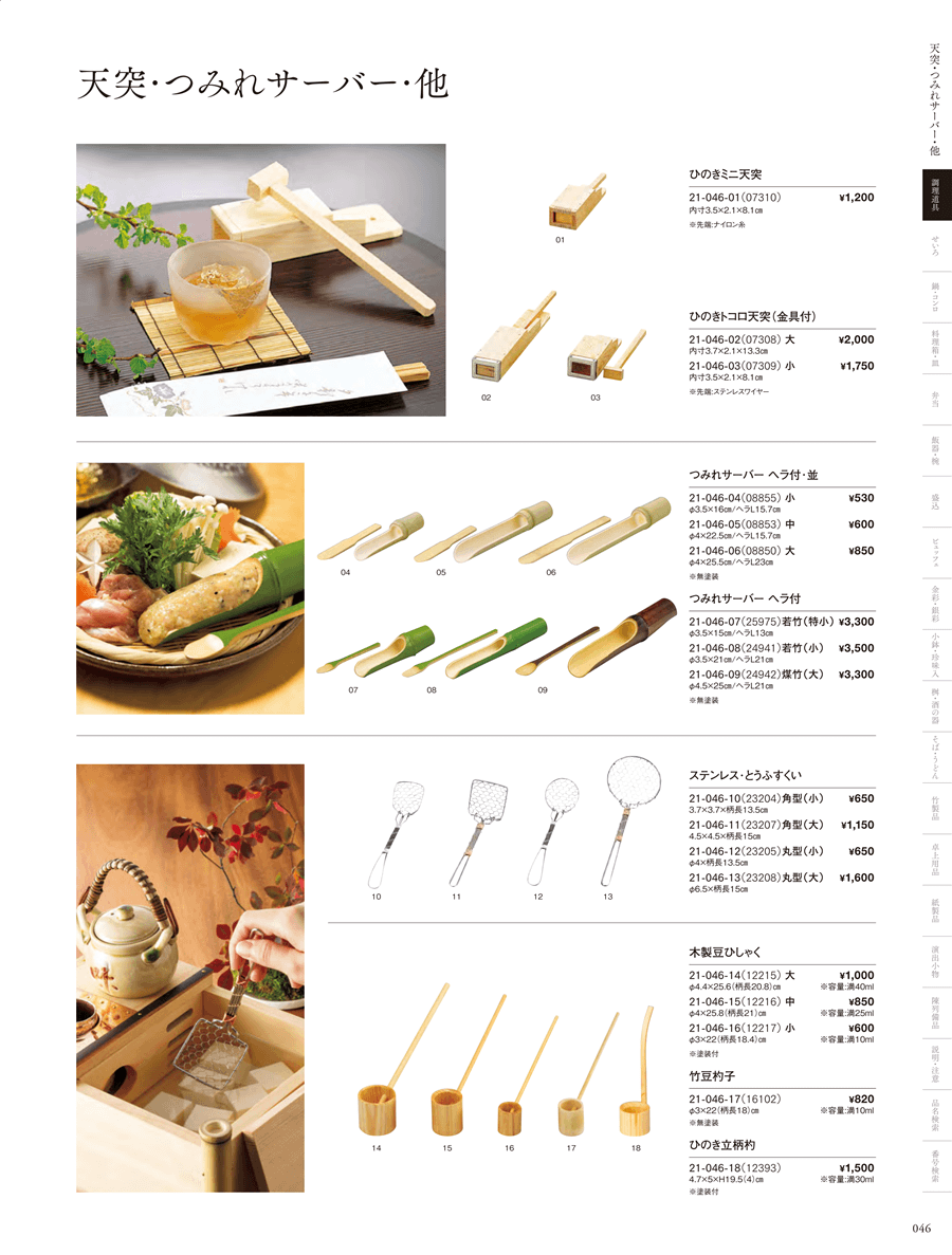 | 21-046-01 | ひのきミニ天突 | 上代 1,200円(税抜) 卸値 792円(税抜) (34%OFF) | ||
