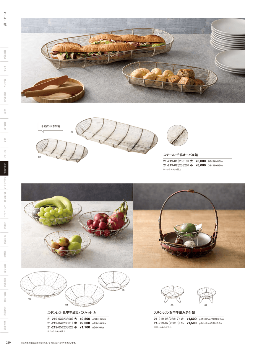 21-219-07ステンレス・亀甲手編み足付篭 (小)上代 1,500円(税抜)