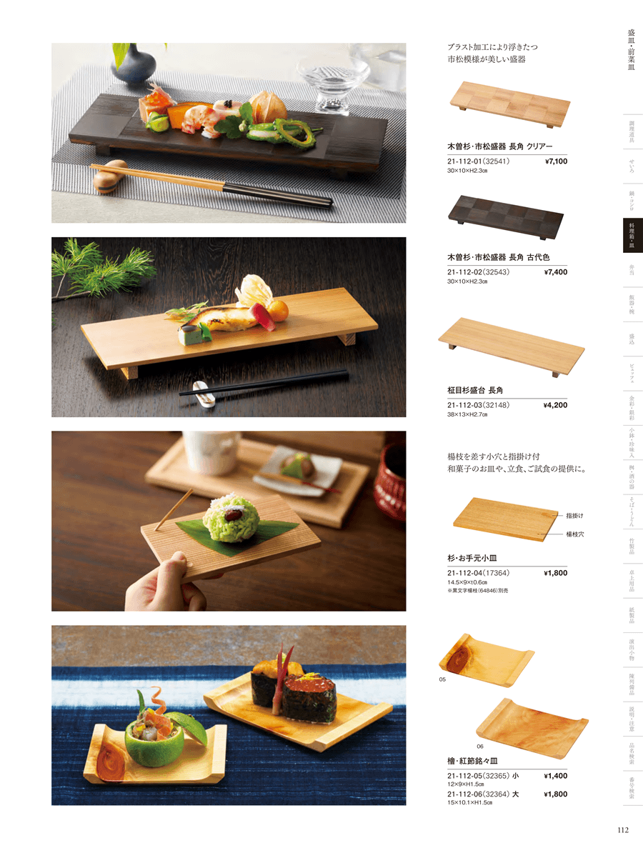| 21-112-01 | 木曽杉・市松盛台(長角)クリアー | 上代 7,100円(税抜) 卸値 4,686円(税抜) (34%OFF) | ||