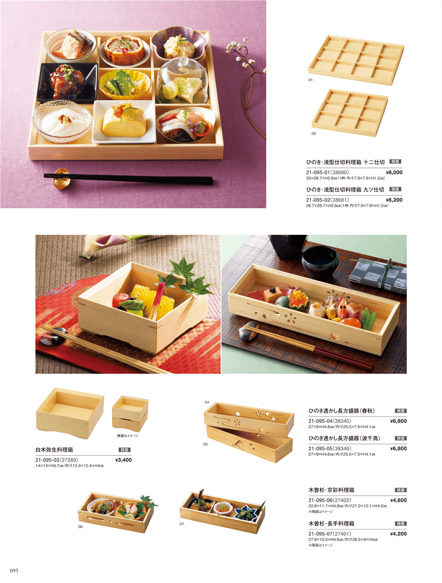 | 21-095-06 | 木曽杉・京彩料理箱 | 上代 4,600円(税抜) 卸値 3,036円(税抜) (34%OFF) | ||
