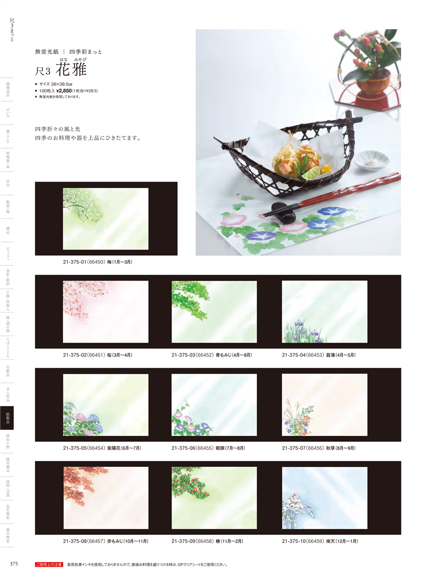 21-375-07尺3四季彩まっと 花雅(はなみやび) 秋草 (100枚入)上代 2,850円(税抜)