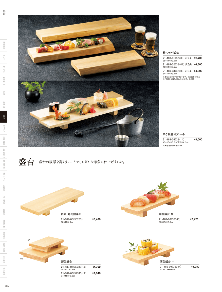 | 21-189-06 | 薄型盛台 (長) | 上代 2,420円(税抜) 卸値 1,598円(税抜) (34%OFF) | ||