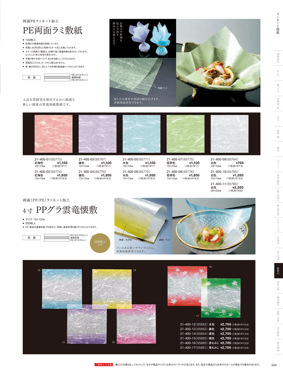 21-400-10両面ラミ敷紙 白色 (15cm角) (100枚入)上代 1,350円(税抜)
