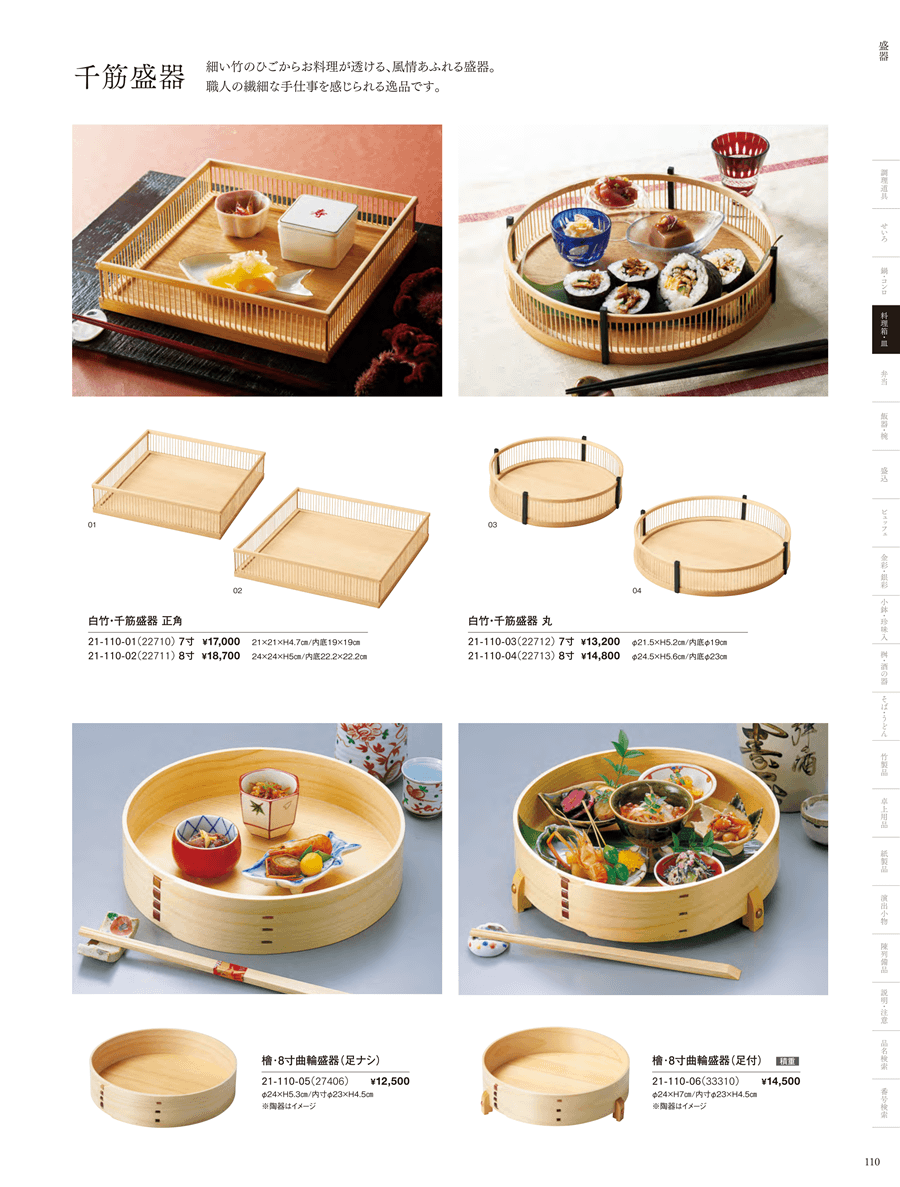 21-110-02白竹千筋盛器・正角(8寸)上代 18,700円(税抜)