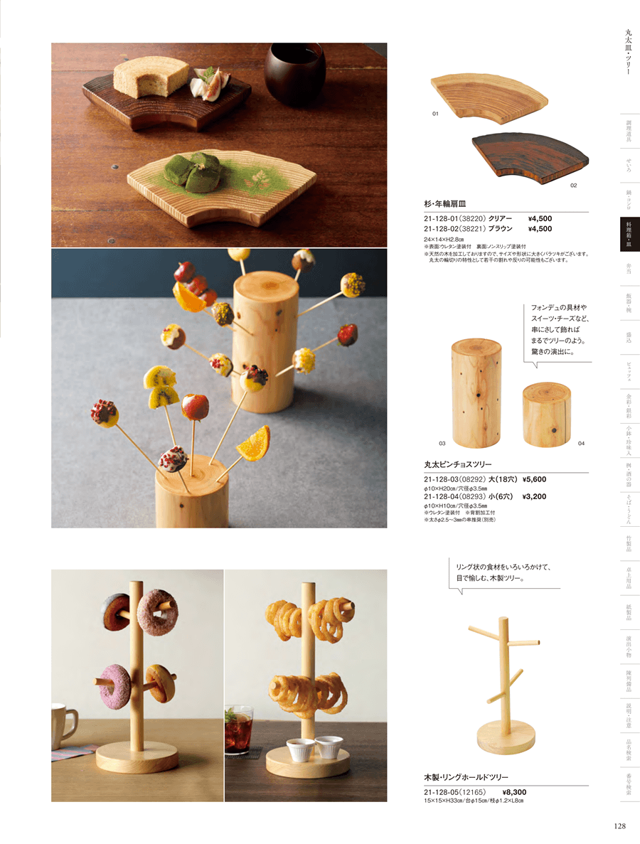 | 21-128-03 | 丸太ピンチョスツリー 大(18穴) | 上代 5,600円(税抜) 卸値 3,696円(税抜) (34%OFF) | ||