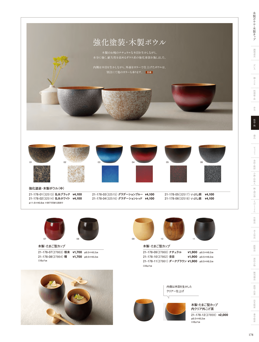 | 21-178-07 | 木製・たまご型カップ(根来) | 上代 1,700円(税抜) 卸値 1,122円(税抜) (34%OFF) | ||