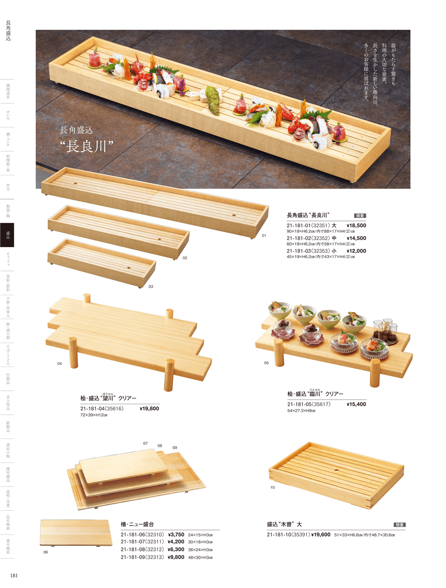 | 21-181-09 | 檜・ニュー盛台 | 上代 9,800円(税抜) 卸値 6,468円(税抜) (34%OFF) | ||