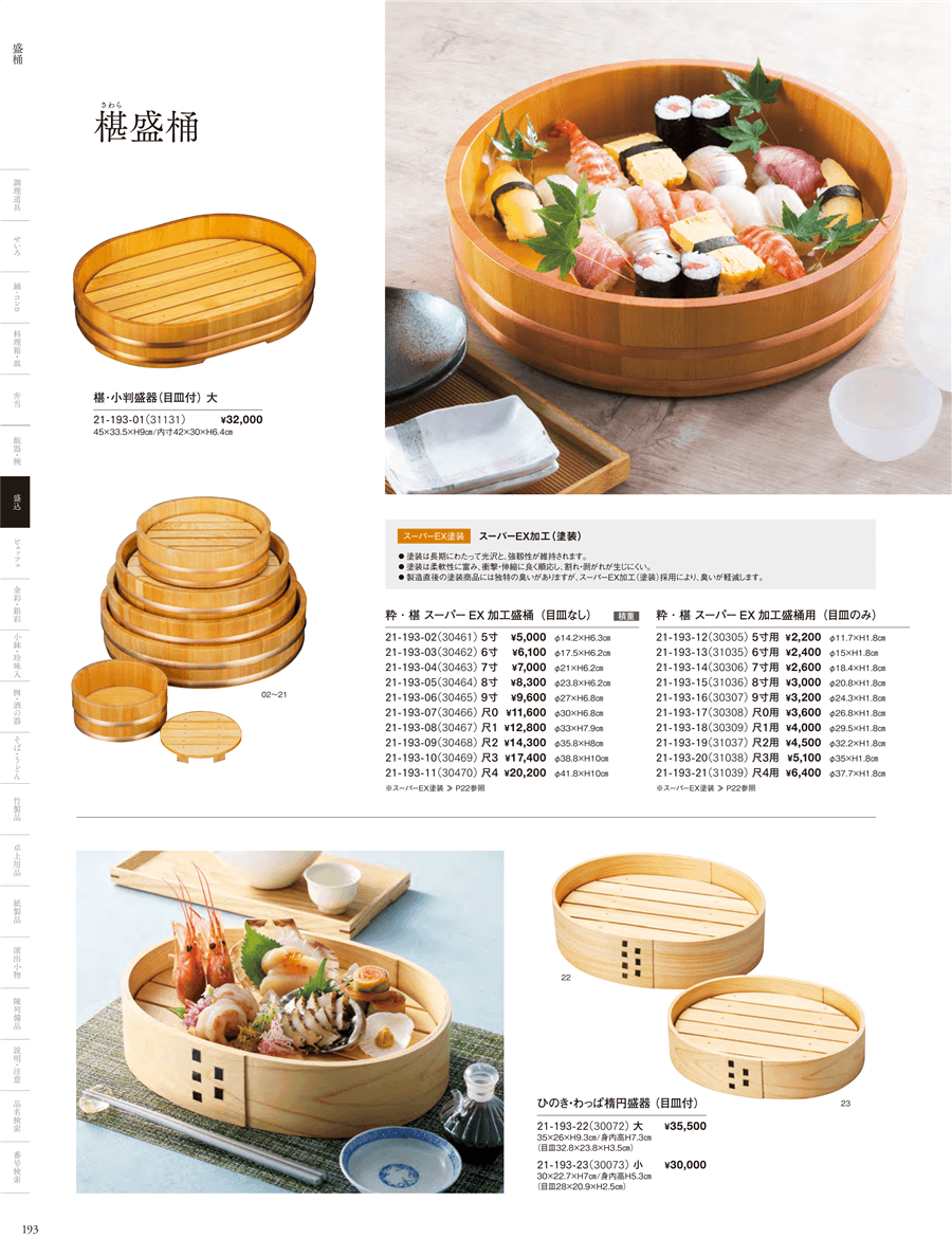 21-193-23ひのき・わっぱ楕円盛器 小上代 30,000円(税抜)