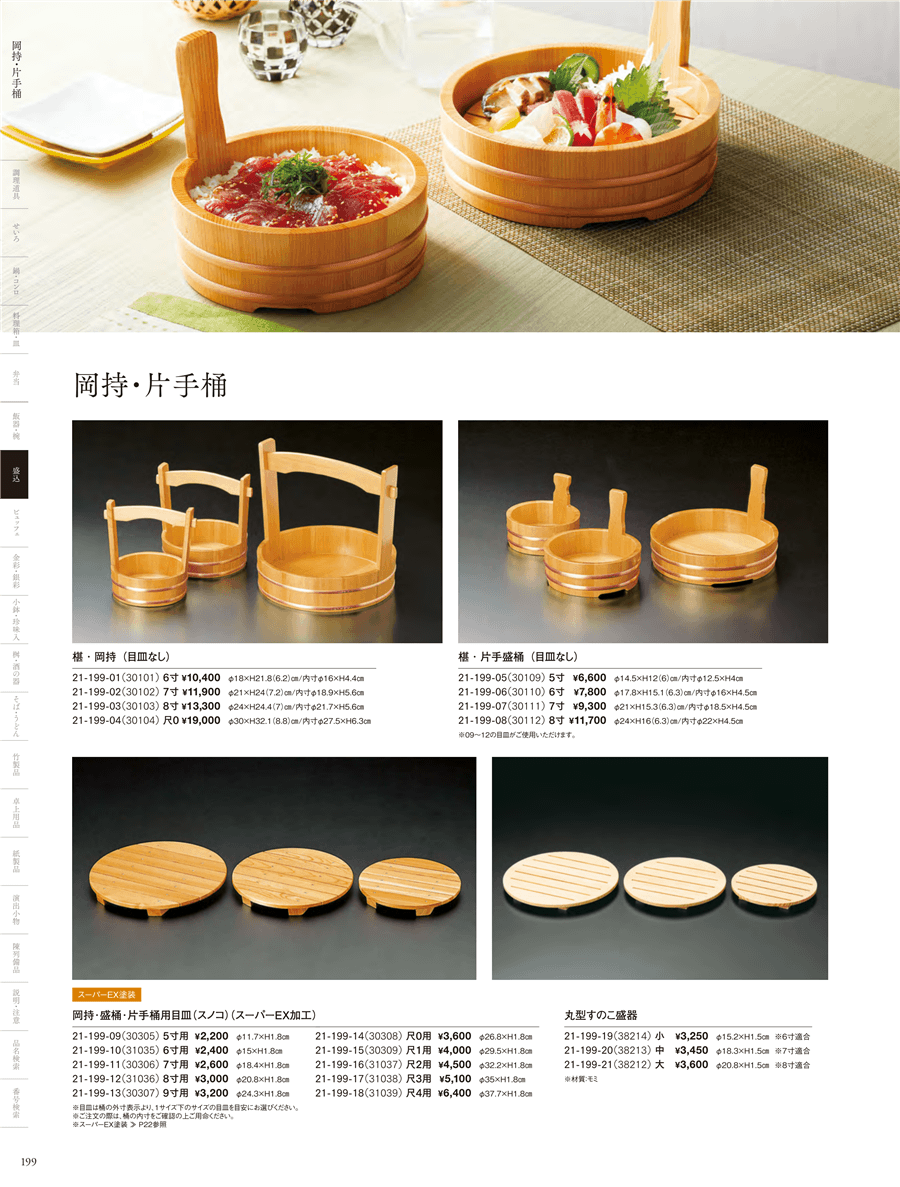 21-199-17椹・スーパーEX加工岡持・盛桶・片手桶用目皿 尺3用上代 5,100円(税抜)