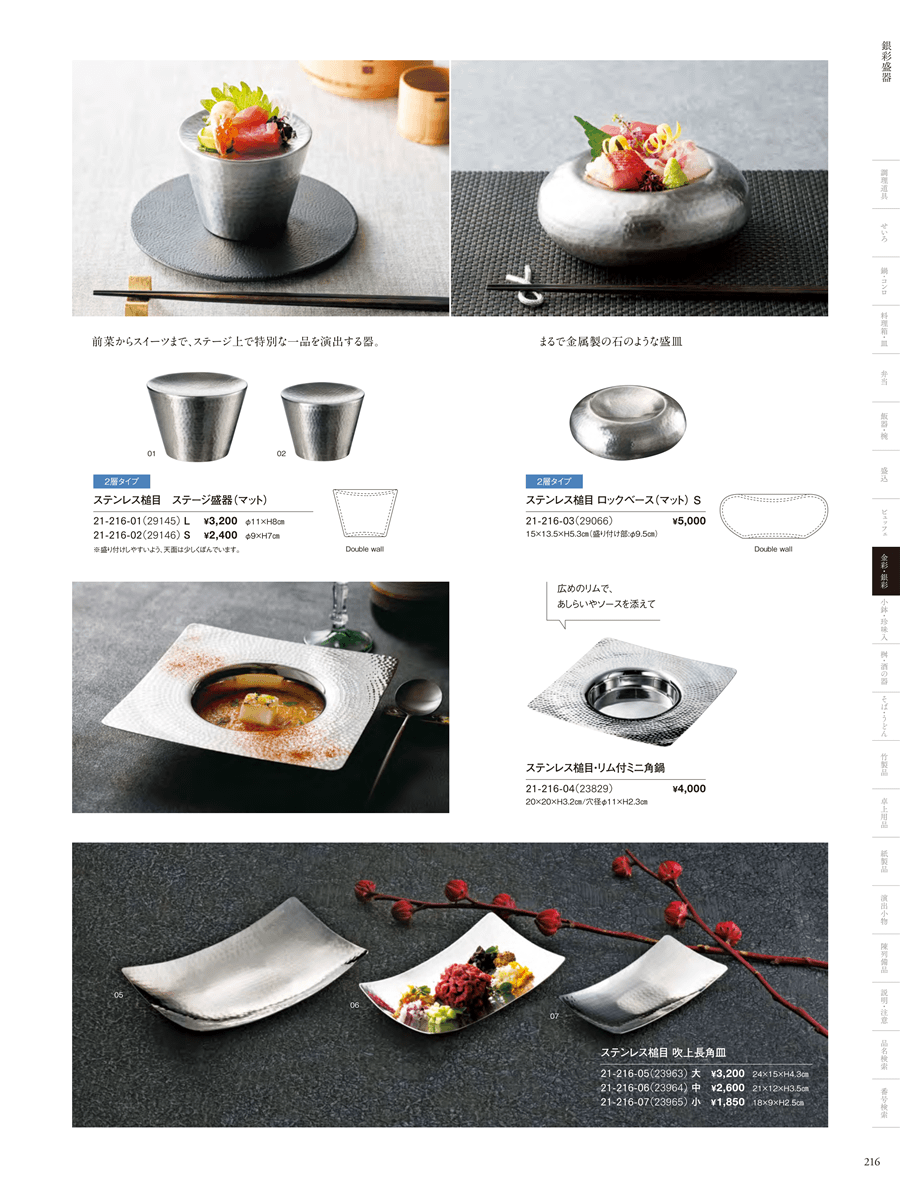 21-216-02ステンレス槌目 ステージ盛器(マット)S上代 2,400円(税抜)