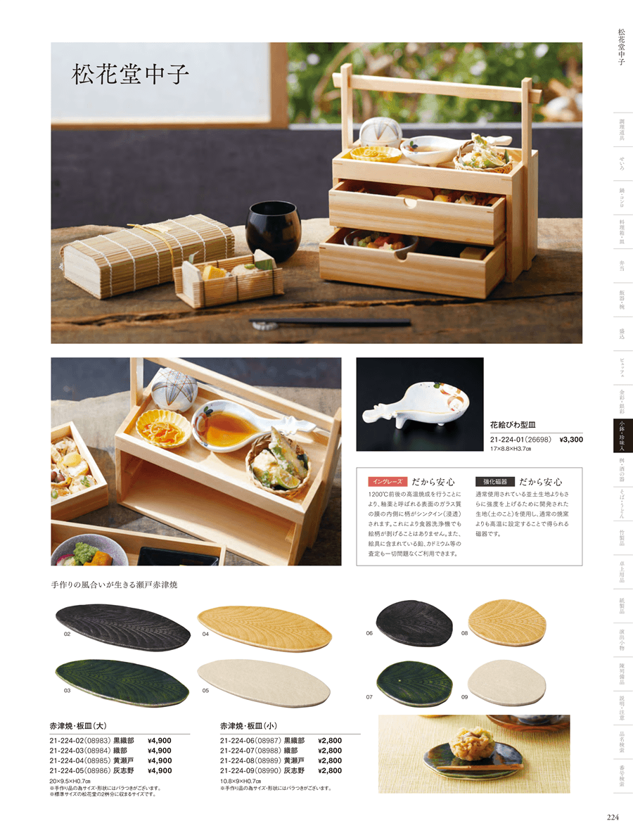 | 21-224-09 | 赤津焼・板皿(小)灰志野 | 上代 2,800円(税抜) 卸値 1,848円(税抜) (34%OFF) | ||