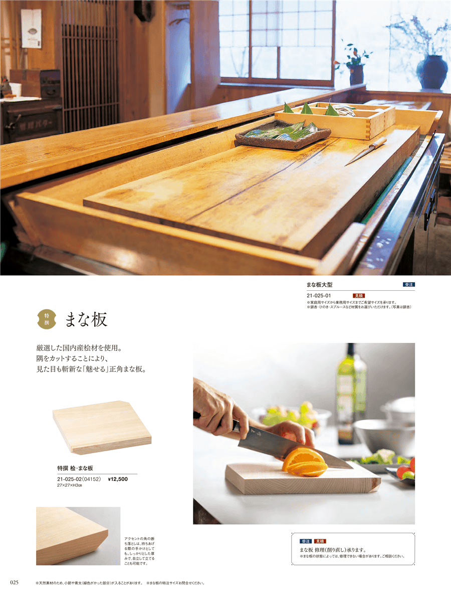 | 21-025-01 | まな板大型 | 上代 --- 見積