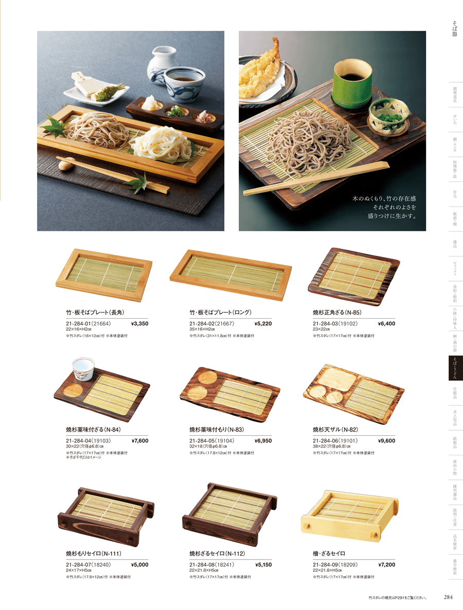| 21-284-04 | 焼杉薬味付ざる | 上代 7,600円(税抜) 卸値 5,016円(税抜) (34%OFF) | ||