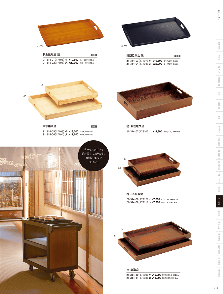 | 21-314-07 | 栓・料理運び盆 | 上代 14,300円(税抜) 卸値 9,438円(税抜) (34%OFF) | ||