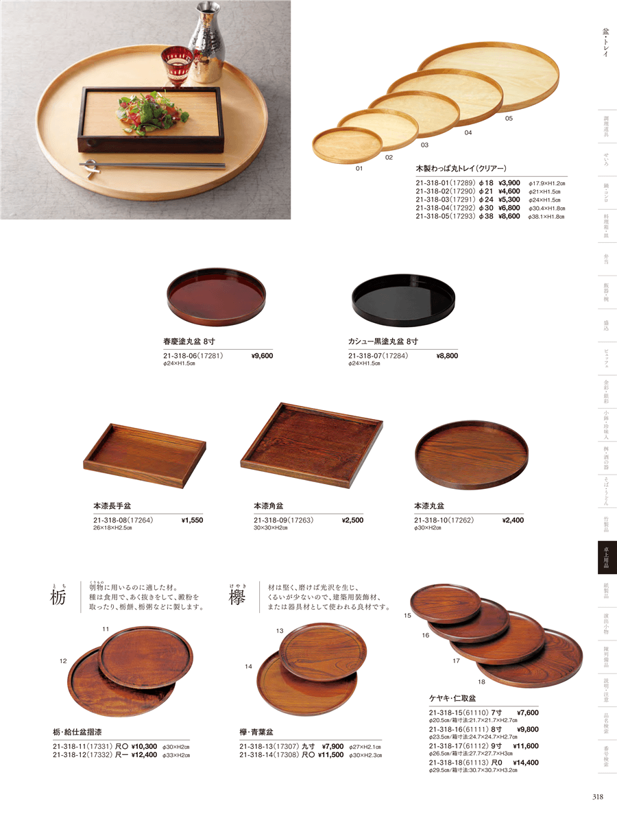 | 21-318-11 | 栃・給仕盆摺漆(尺) | 上代 10,300円(税抜) 卸値 6,798円(税抜) (34%OFF) | ||