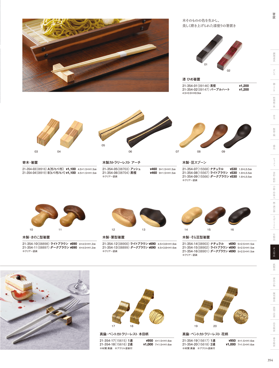 | 21-354-06 | 木製 カトラリーレスト アーチ 黒檀 | 上代 460円(税抜) 卸値 304円(税抜) (34%OFF) | ||