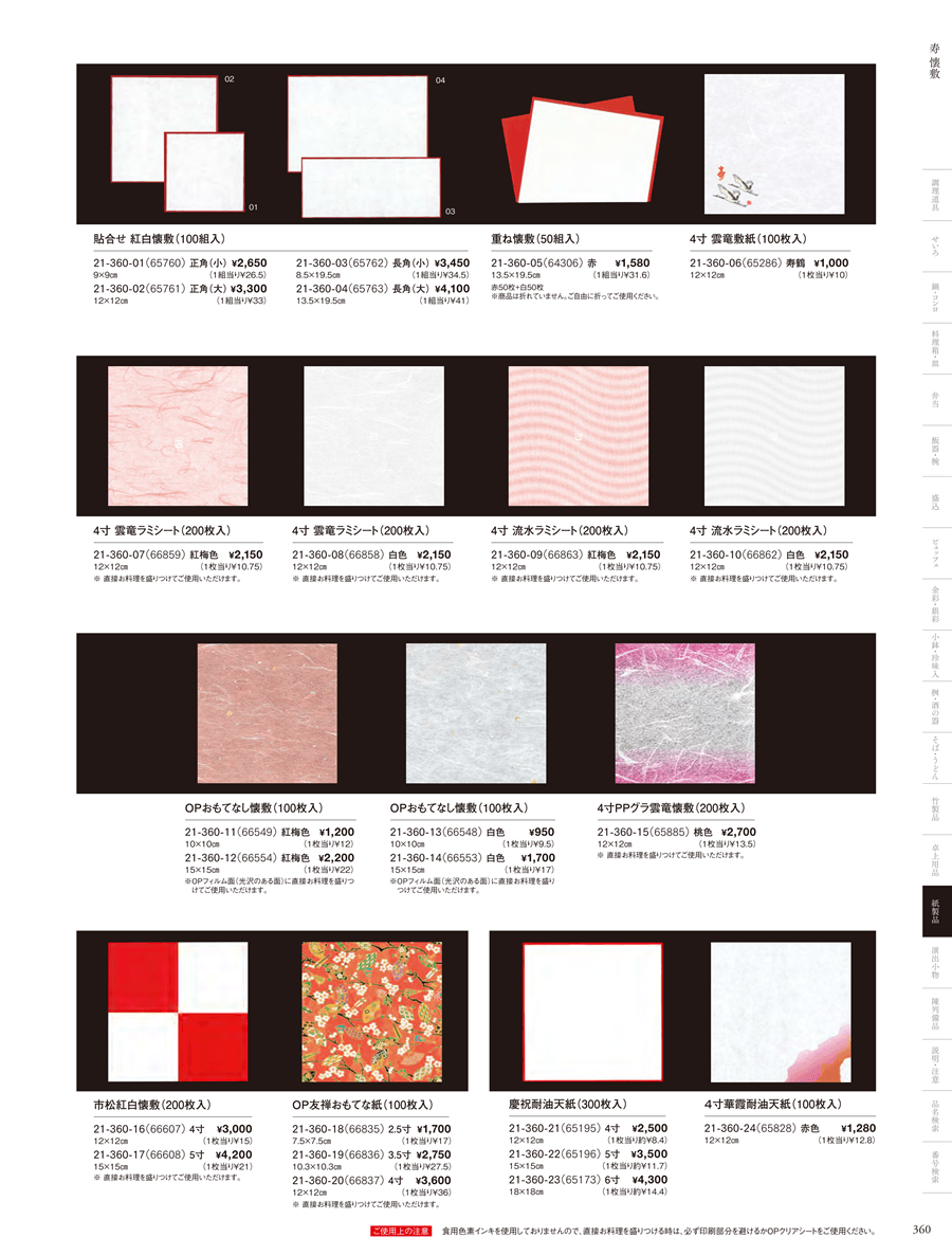 21-360-21慶祝耐油天紙 4寸 (300枚入)上代 2,500円(税抜)