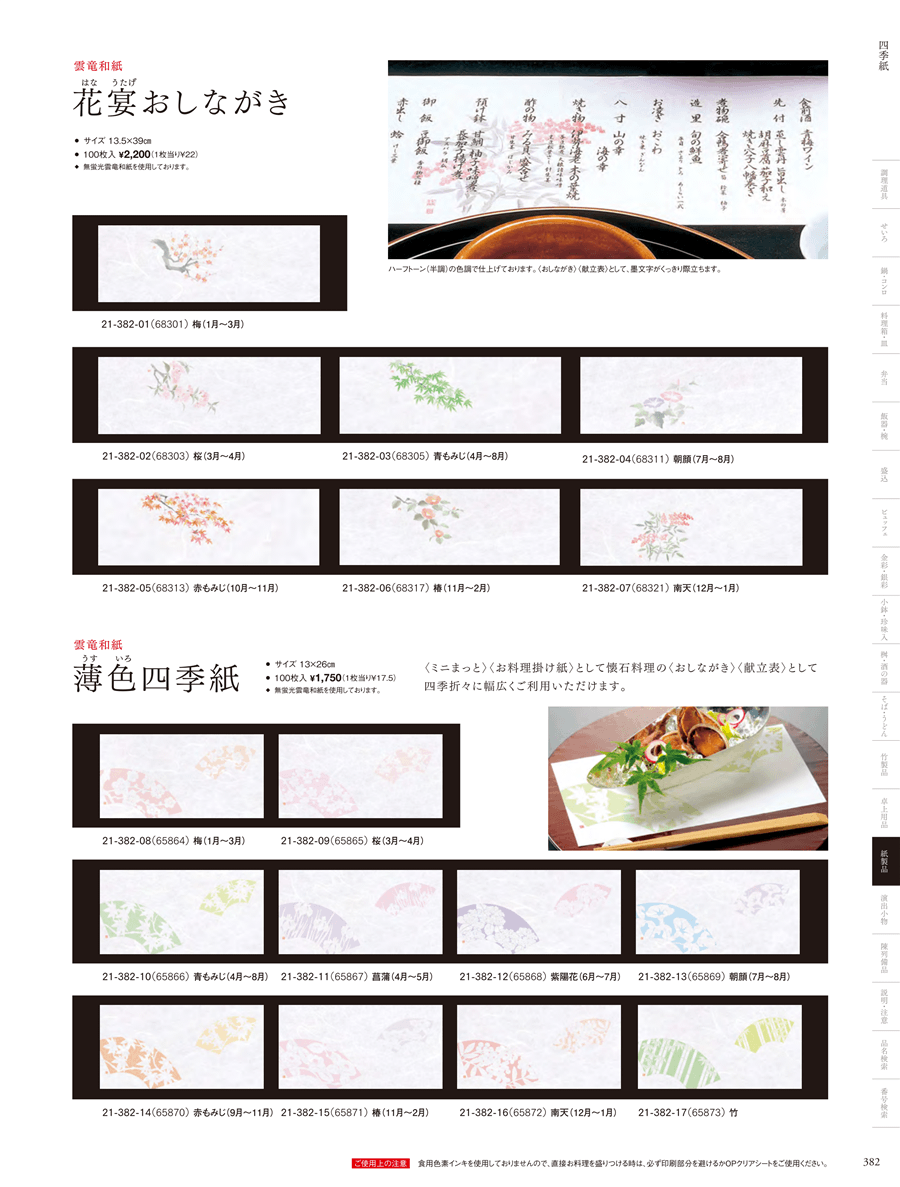 21-382-01花宴おしながき 梅 (100枚入)上代 2,200円(税抜)