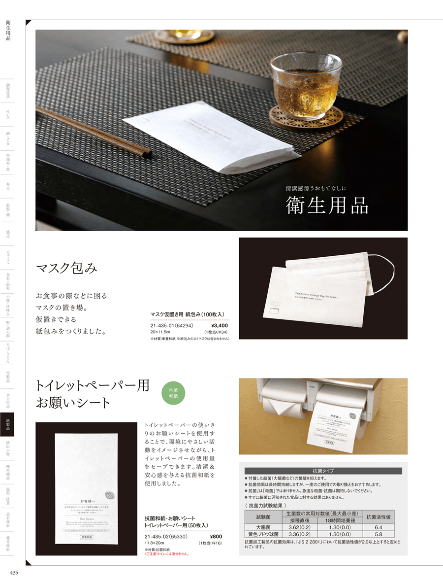 21-435-01マスク仮置き用 紙包み(100枚入)上代 3,400円(税抜)