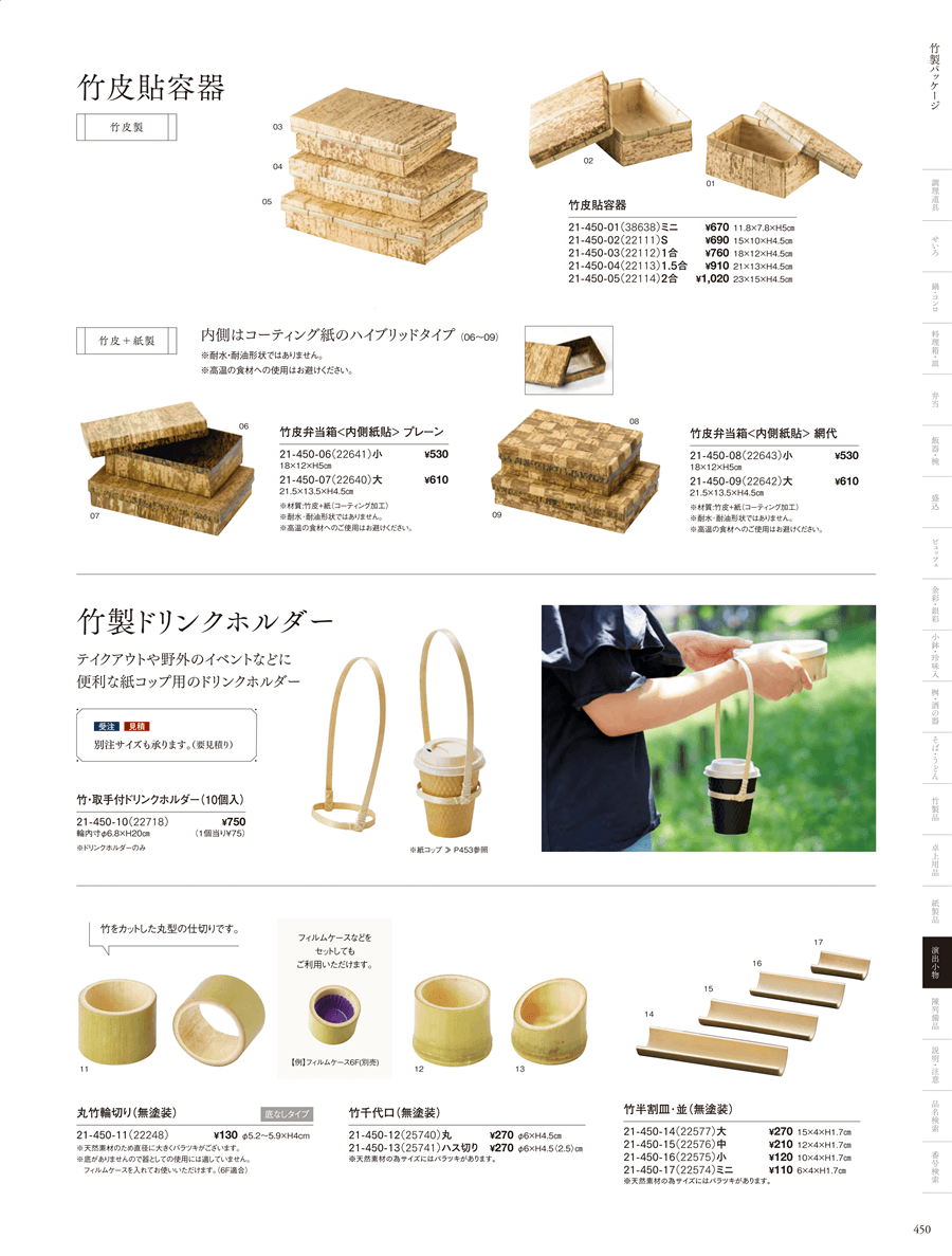 21-450-01竹皮貼容器ミニ上代 670円(税抜)