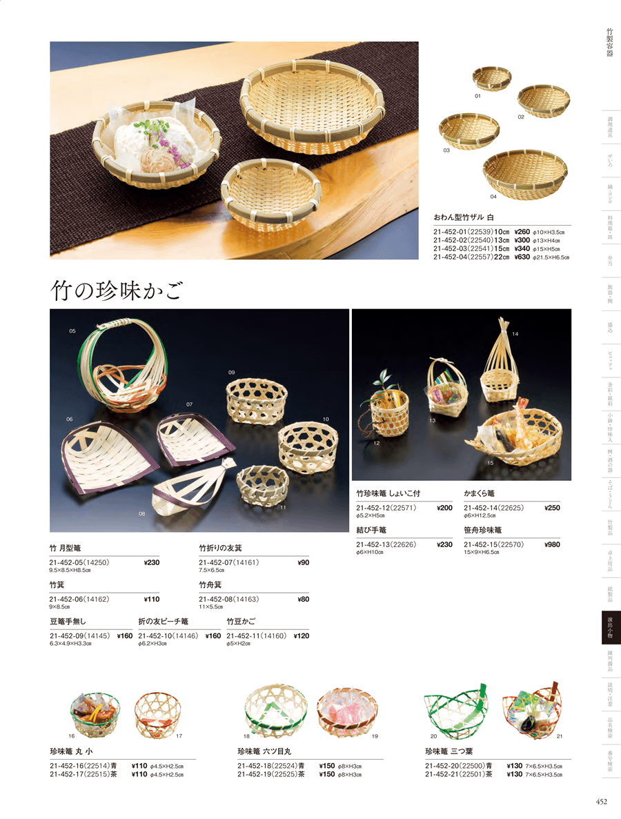 | 21-452-12 | 竹珍味篭しょいこ付 | 上代 200円(税抜) 卸値 132円(税抜) (34%OFF) | ||