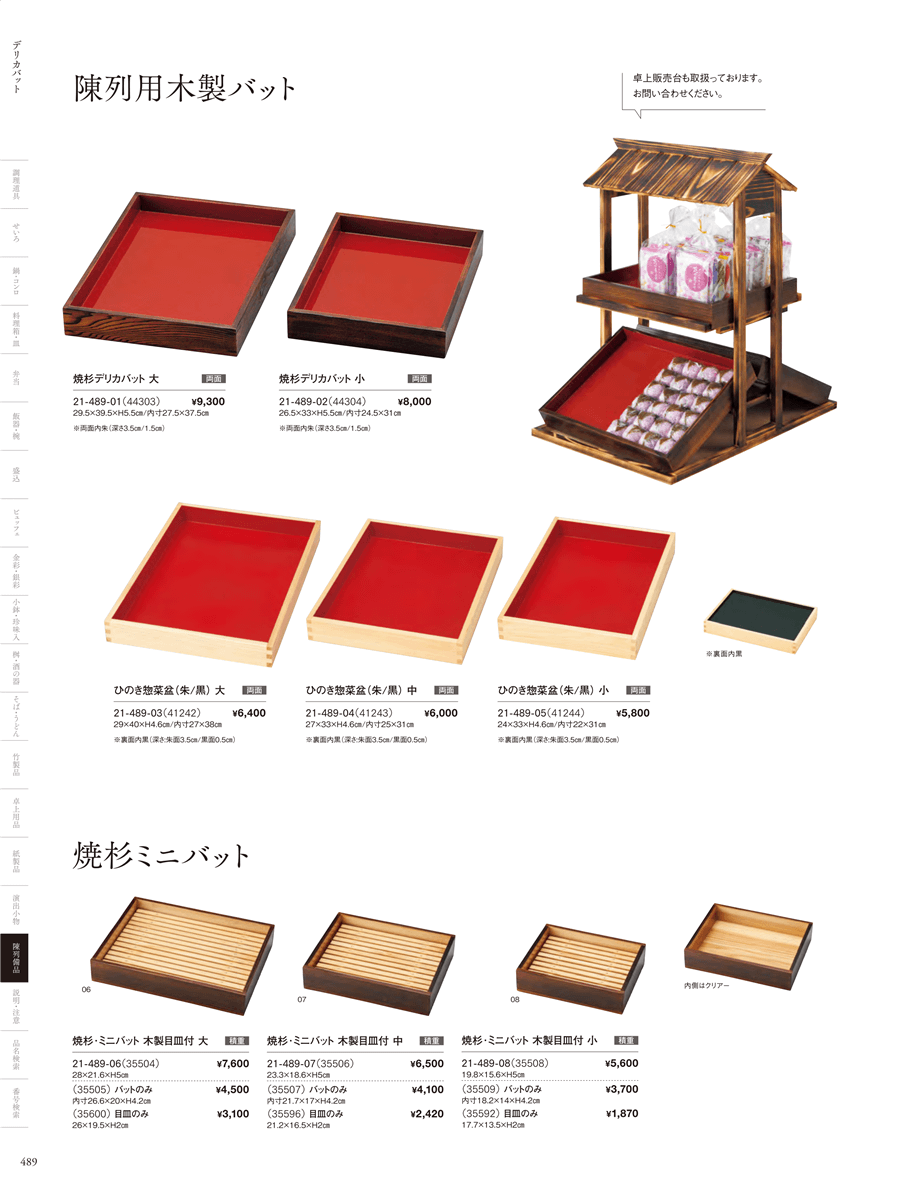 | 21-489-08 | 焼杉・ミニバット 木製目皿付 小 | 上代 5,600円(税抜) 卸値 3,696円(税抜) (34%OFF) | ||
