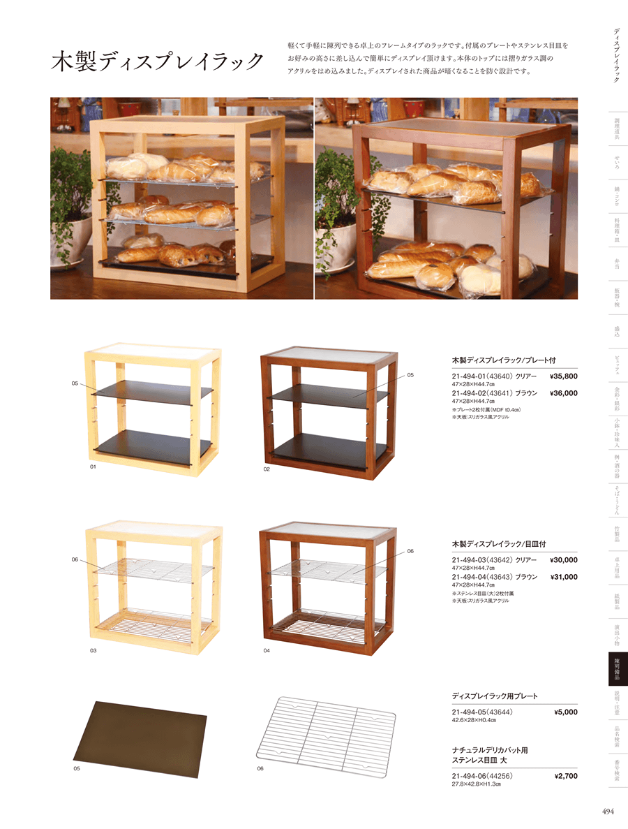 | 21-494-03 | 木製ディスプレイラック/目皿付 クリアー | 上代 30,000円(税抜) 卸値 19,800円(税抜) (34%OFF) | ||