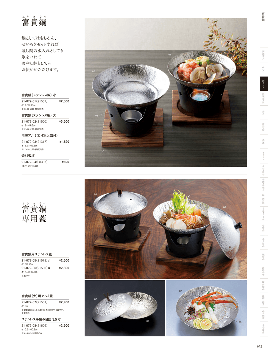 21-072-02富貴鍋(ステンレス製)大上代 3,500円(税抜)