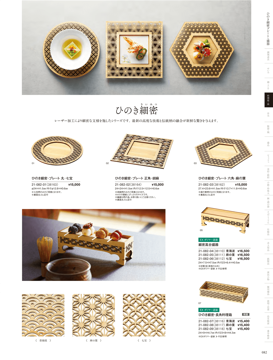 21-082-07ひのき細密・長角料理箱 青海波上代 15,400円(税抜)
