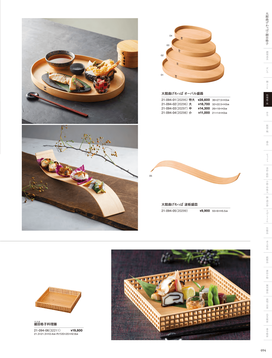 | 21-094-01 | 大館曲げわっぱ オーバル盛器 特大 | 上代 28,600円(税抜) 卸値 18,876円(税抜) (34%OFF) | ||