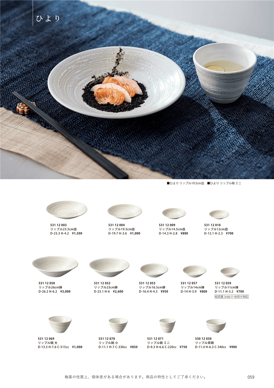 | kd12-53112069 | ひより リップル碗 大 | 上代 1,000円(税抜) 卸値 500円(税抜) (50%OFF) | ||