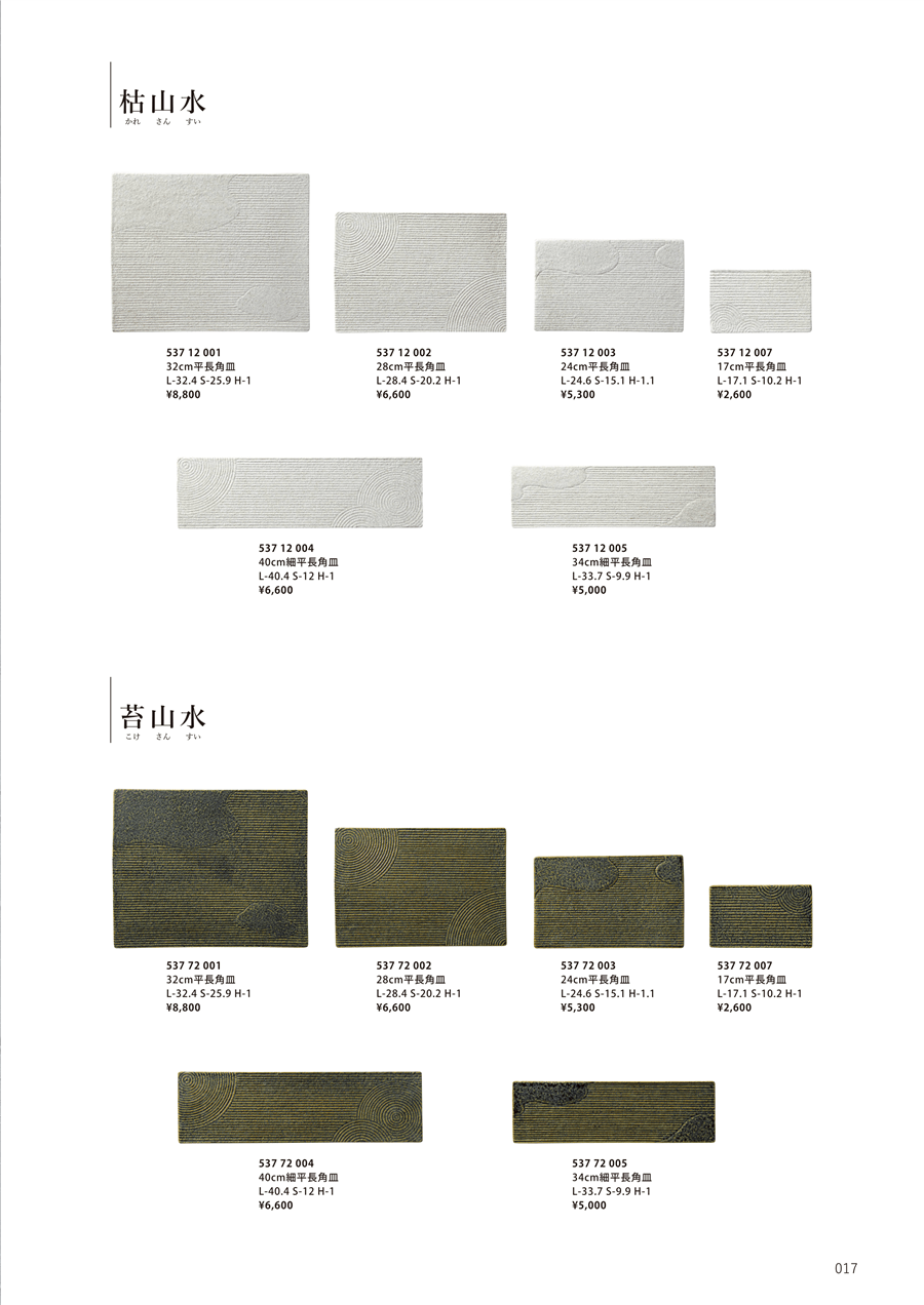 | kd12-53712001 | 枯山水 32cm平長角皿 | 上代 8,800円(税抜) 卸値 4,400円(税抜) (50%OFF) | ||