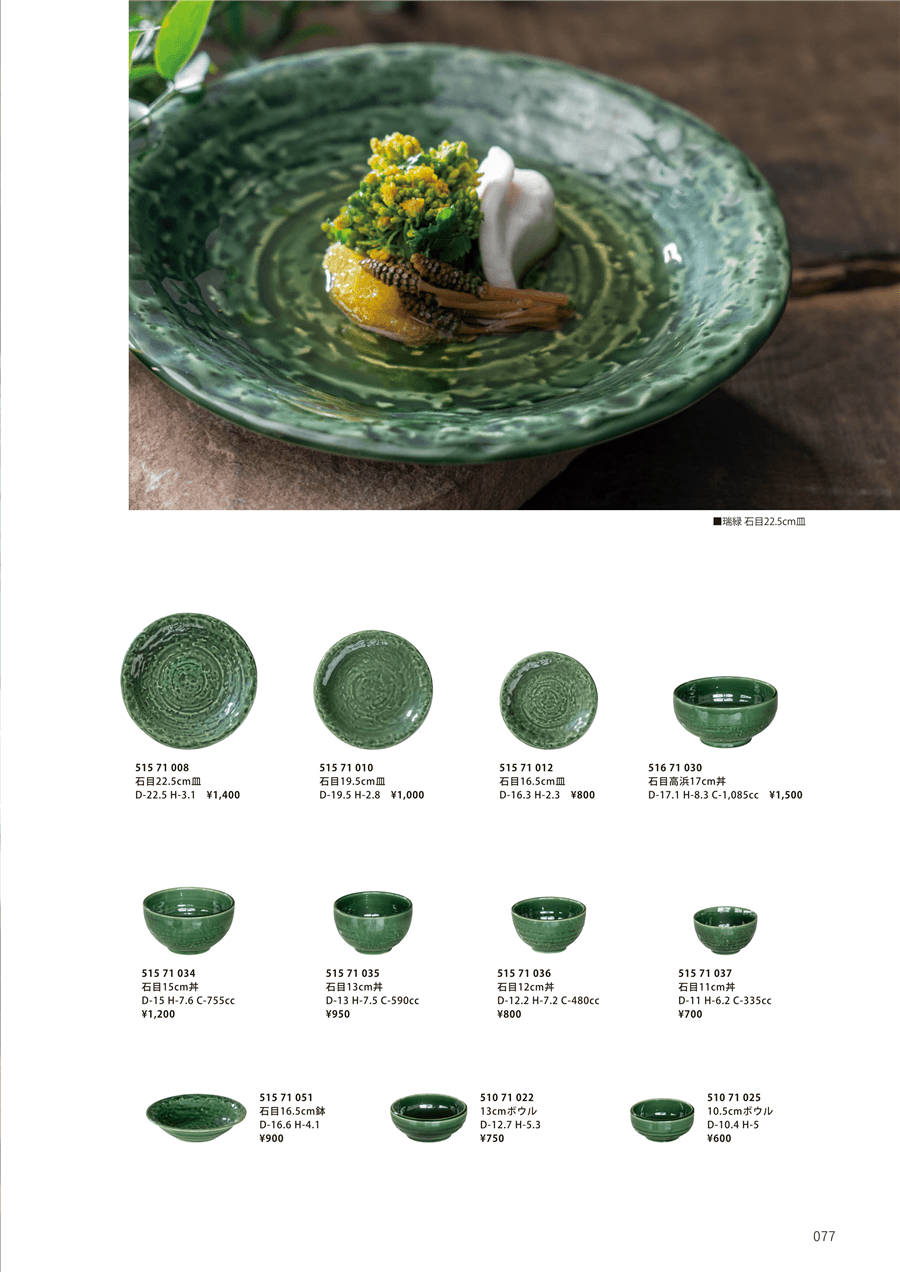 | kd12-51571008 | 瑞緑 石目22.5cm皿 | 上代 1,400円(税抜) 卸値 700円(税抜) (50%OFF) | ||