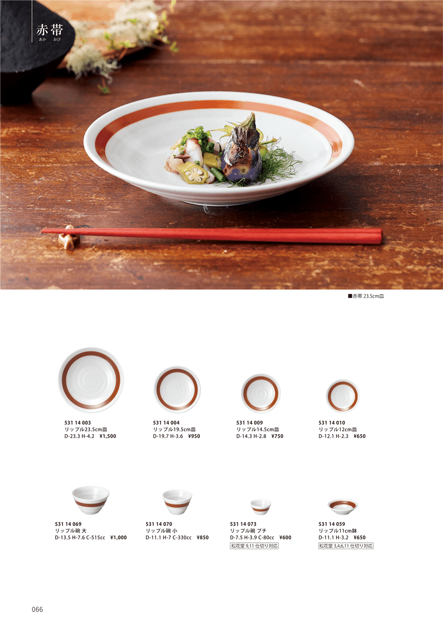 | kd12-53114009 | 赤帯 リップル14.5cm皿 | 上代 750円(税抜) 卸値 375円(税抜) (50%OFF) | ||