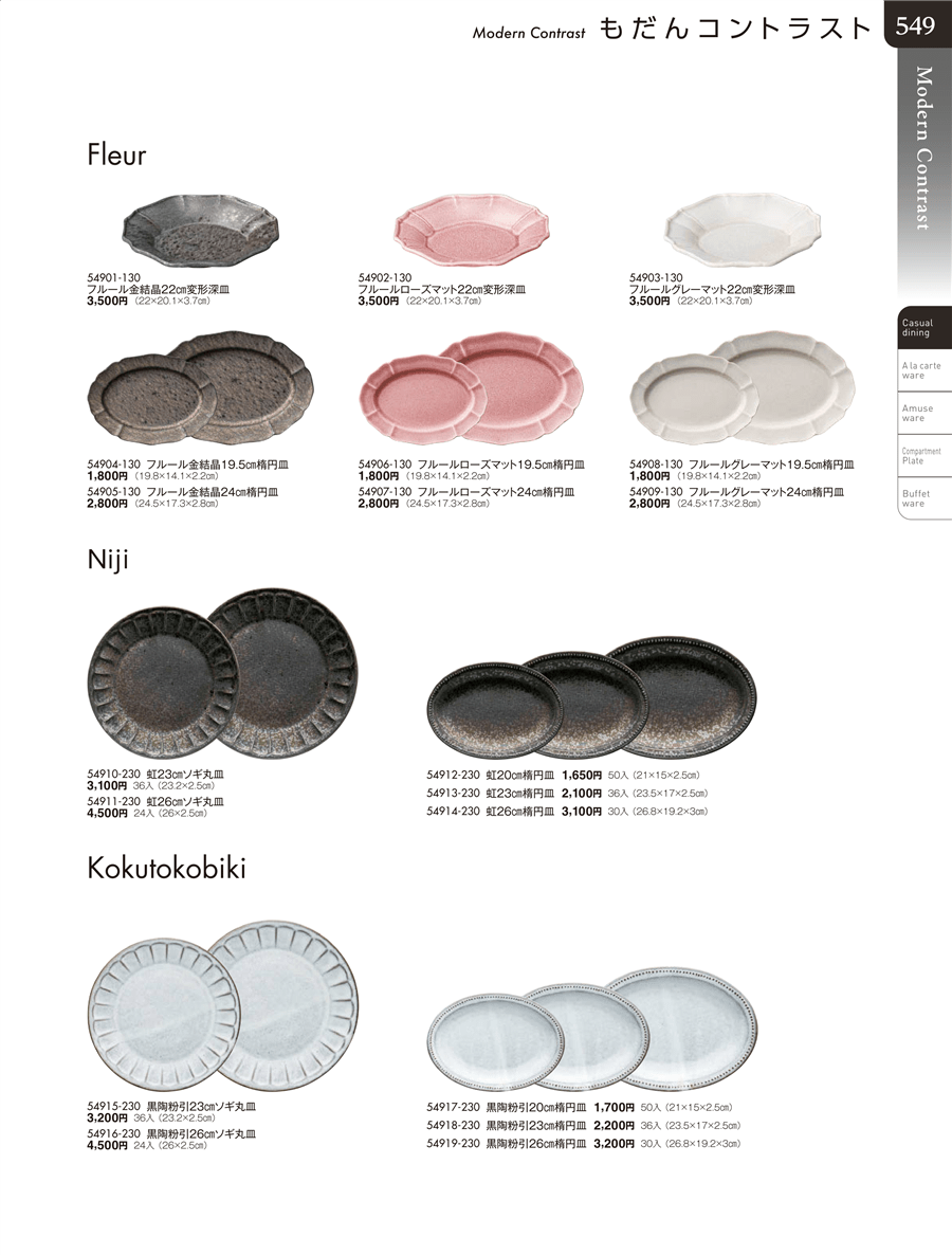 | 54909-130 | フルールグレーマット24㎝楕円皿 | 上代 2,800円(税抜) 卸値 1,541円(税抜) (45%OFF) | ||