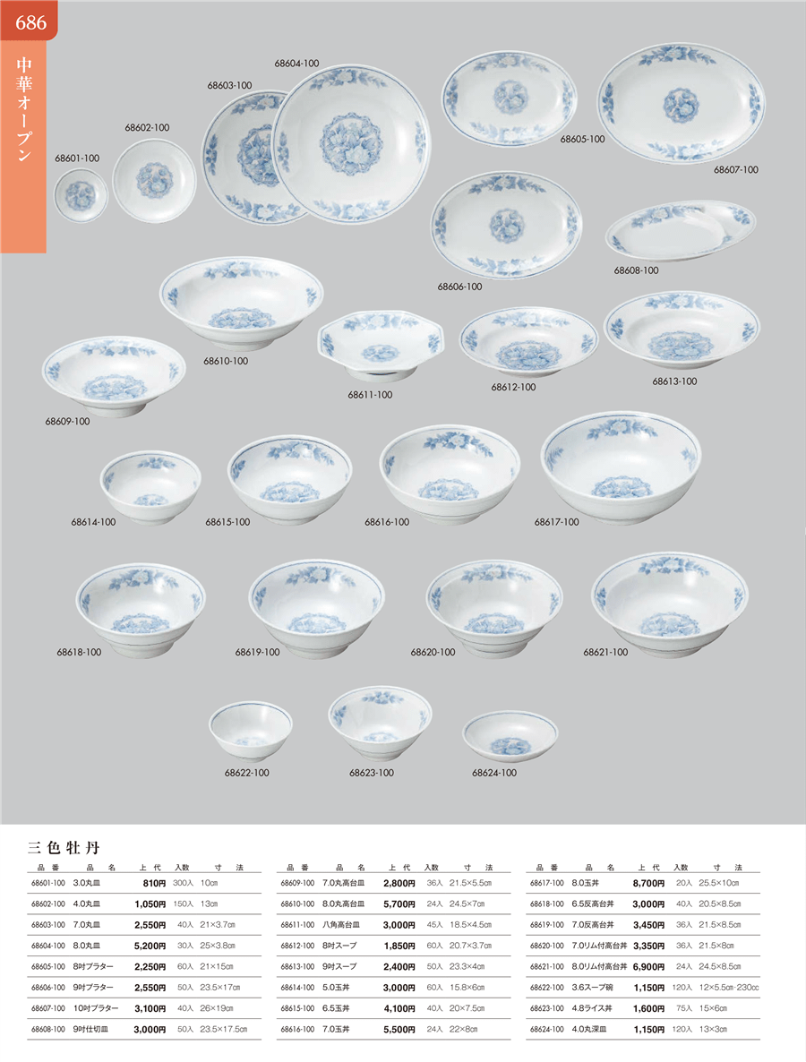 68612-100三色牡丹 8吋スープ上代 1,850円(税抜)