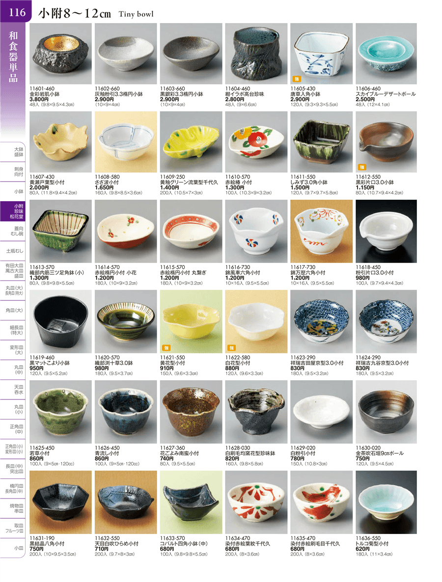| 11628-030 | 白刷毛均窯花型珍味鉢 | 上代 820円(税抜) 卸値 452円(税抜) (45%OFF) | ||